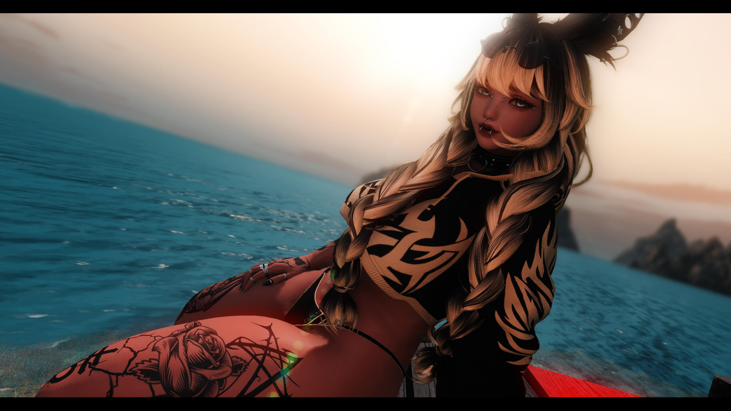 the child was barely up to their chest. As far as the guards knew, Malli was only the age of 8, or at least, that's what they told them. It was also at this time that they would earn their nickname, SkyKitten. One day, they showed up a little differently. It wasn't a quiet appearance on their doorstep, it was the sound of meowing that drew the pirates attention. There was Malli, surrounded by the local Gaelikitten population, at least a couple dozen. Some napping atop Malli's head and shoulders, others in their arms, snuggling close for warmth, and others... just playfully mewing at the gentle giant cat.Multiple years pass, and their sudden growth would slow. 12 years later, they stood a full 10ft tall. It baffled Their sky pirate friends, as they'd never seen a Miqo'te at such a height before. It was also at this time, that Malli would develop quite the taste for fish. They were given one, and promptly took a giant bite, much to the surprise of the Pirates, who thought it would at least be cooked in some form first. Their pupils grew large and they started to drool. Then the fish disappeared. They looked at the pirates, eyes all starry before they vanished and reappeared next to their fish stockpile. It was nearly gone by the time they somehow managed to pull the cat off of it. Several laughed while watching, while the rest sighed, knowing they'd have to refill the pile before the week was up.From that day, Malli was often sighted lurking around fisherman in the Sea of Clouds, waiting for them to look away for even just a single moment. You'd think a large cat made a lot of noise, but they was silent. The Pirates accept no blame for unleashing the fish loving menace upon the Sea of Clouds, and later, the continent of Eorzea. Limsan fisherman especially are always on the lookout for the fishy thief. Some though, don't believe they exist, and that it's just a fairy tale. They believe its simply a bird of prey swooping silently to pilfer a prize of unwatched fish.It was around the time of their fishy discovery, Malli became curious. The stories they would hear from the Sky pirates made them want to explore the world. They would hear tales of ships sailing across the water, of buildings carved from stone reaching the edge of the sky... and even of creatures called dragons. So, they stowed away on a Sky Pirate ship one day and found themselves on the mainland of Kugane after several days of travel. Malli became quite the little thief after hearing that they would need something called "Gil". They didn't know what they'd need it for, but one day they'd get caught, causing them to run and hide again. So they ran to the Ruby Sea, where they'd continue their thieving antics.Malli would get caught again by the Confederacy, the pirates of the region. They would notice Malli's unique gift for thieving, but with the Skykitten having stolen from them... The cat would be working for them to pay off the debt. It was also at this time, that Malli would notice just how much they hated the heat. Malli would prefer the days where the Confederacy would put them on a ship, as the sea breeze helped keep them cool.They'd prove themselves a trustworthy member of the crew over this time, thieving instead for the Confederacy instead of from them. Everything they did though, was done with a sort of aloofness where they never really took anything seriously, except when thieving fish for their own belly.Malli would spend the rest of their life as part of the Confederacy and would eventually pass on. Several hundred years later, Malli's spirit would re-manifest and inhabit a plush doll that had been stored away by the Kojin. A small choker with plushie written on it adorned it's neck, and the spirit was invested in such a cute and
